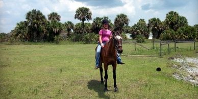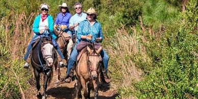 The two hour trail ride can take us to a lake and a canal that we can ride through. Depending on the time of your trail ride, we may see deer, gopher tortoises, bobcats, turkeys, wild hogs, hawks, and eagles. During hunting seasons, please wear bright colored clothing. A saddle bag is provided for you to bring along, if needed for your camera/etc. We can take four to five riders at a time. Ages of riders start as young as 8. Guided trail rides consist of walk and trot. This will depend upon the riders’ abilities. We supply bottled water for the trail ride and we also put pictures on Facebook.